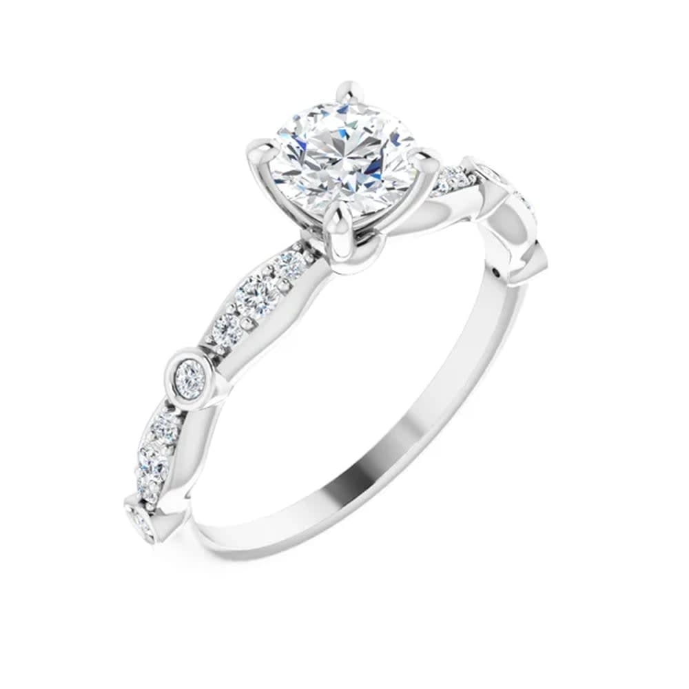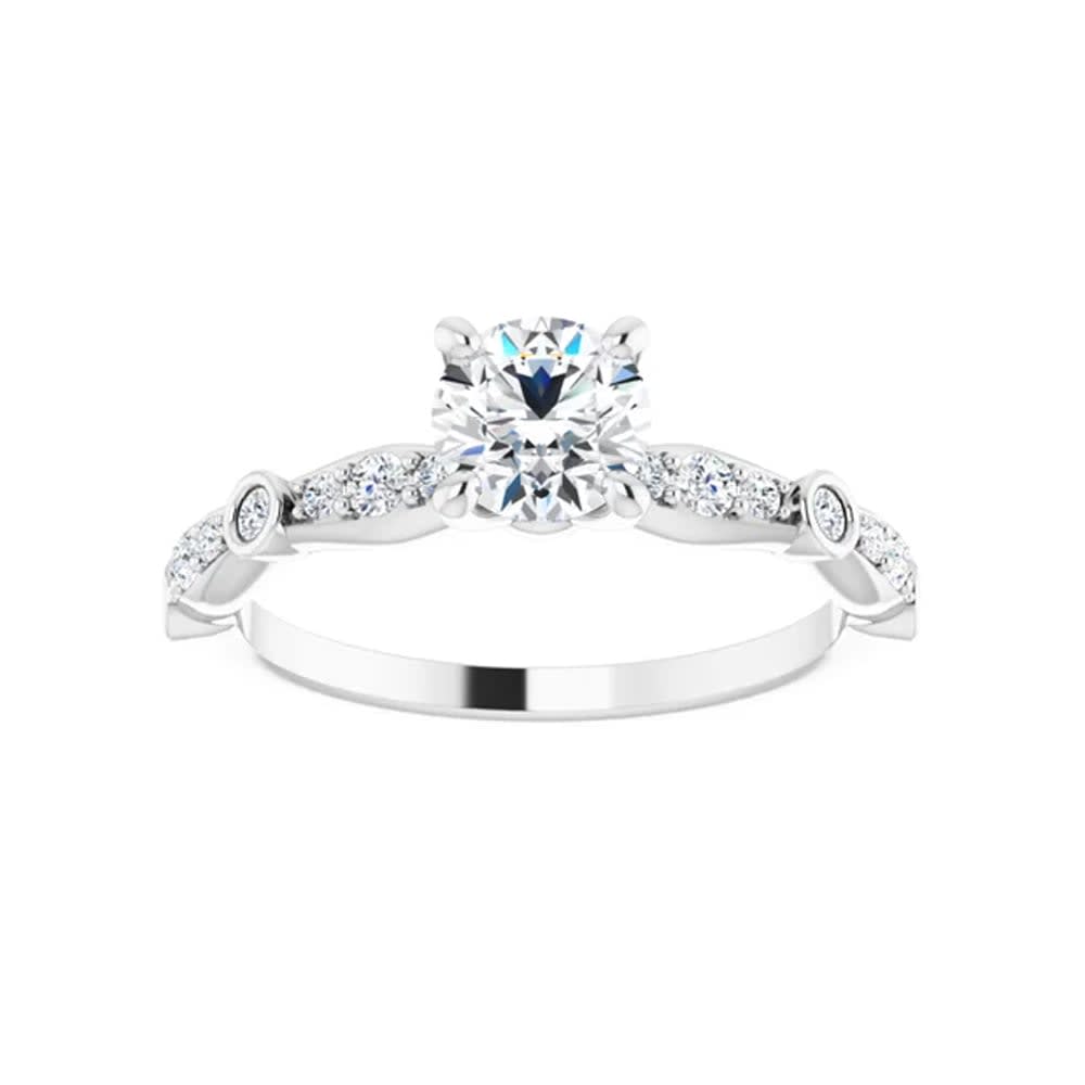 This women's engagement ring features a stunning round cut diamond, gracefully set in a classic four claw setting. Enhancing the beauty of this magnificent ring, the shank of the band is adorned with a dazzling array of round cut diamonds. Each diamond is carefully placed to complement and highlight the centre stone, creating a harmonious and captivating display. All Temple and Grace jewellery is beautifully crafted to the highest standards and is made at our jewellery workshop directly by us (skilled jewellery craftsmen). This is why you can save over 40% when compared to high-street retail prices. We also offer a lifetime warranty and unmatched 100 day returns. You can shop online or book an appointment to visit our jewellery boutiques in Sydney, Melbourne, Brisbane, Perth and Adelaide.