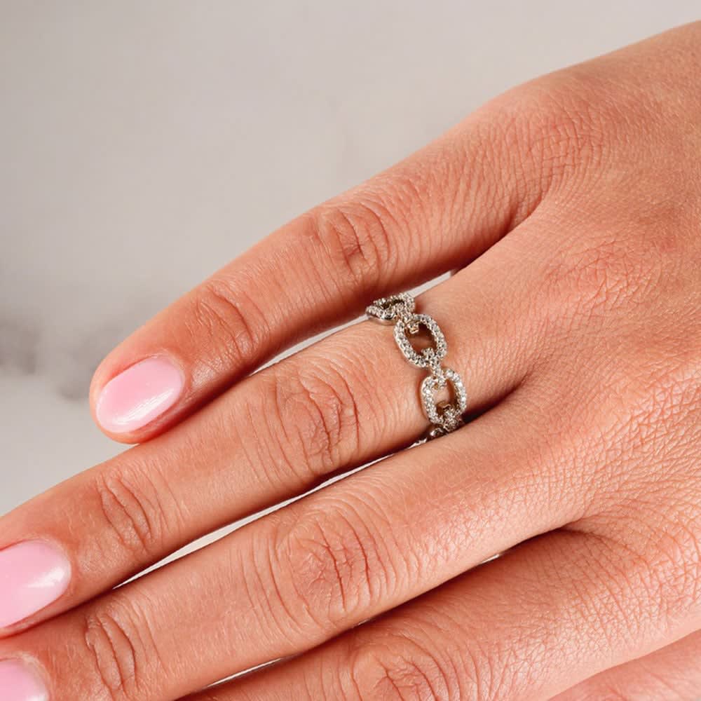 This women's ring features a unique and stylish design with an open square chain pattern, beautifully embellished by round brilliant diamonds in a pave setting. The pattern consists of interconnected square shapes, creating an intricate and visually appealing motif. The open design of the squares allows for a sense of lightness and airiness, adding a touch of modern elegance to them. All Temple and Grace jewellery is beautifully crafted to the highest standards and is made at our jewellery workshop directly by us (skilled jewellery craftsmen). This is why you can save over 40% when compared to high-street retail prices. We also offer a lifetime warranty and unmatched 100 day returns. You can shop online or book an appointment to visit our jewellery boutiques in Sydney, Melbourne, Brisbane, Perth and Adelaide.