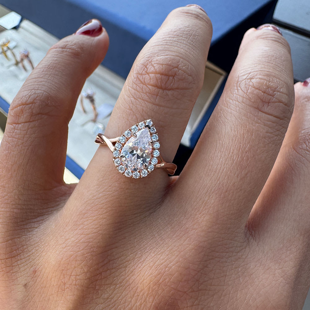 This Pear Cut engagement ring with a diamond halo is set with a 0.60ct GIA Certified pear cut diamond in the center with other 0.20ct diamonds forming a diamond halo on a plain band. This ring style can be made to accommodate a center stone of any size/quality to meet your desired budget. All rings are available in Platinum, 18K White, Yellow, and Rose Gold. Temple and Grace are the only Australian jewellery store to offer a 100% peace-of-mind guarantee. It's simple, you either love your new diamond ring or get your money back. Need it customized? Call us for a no-obligation quote. Being Sydney based jewellery designers and makers means that we can offer you incredible value for your money. When you buy your jewellery directly from us, you cut out on the expensive high-street stores and save up to 40% on your jewellery