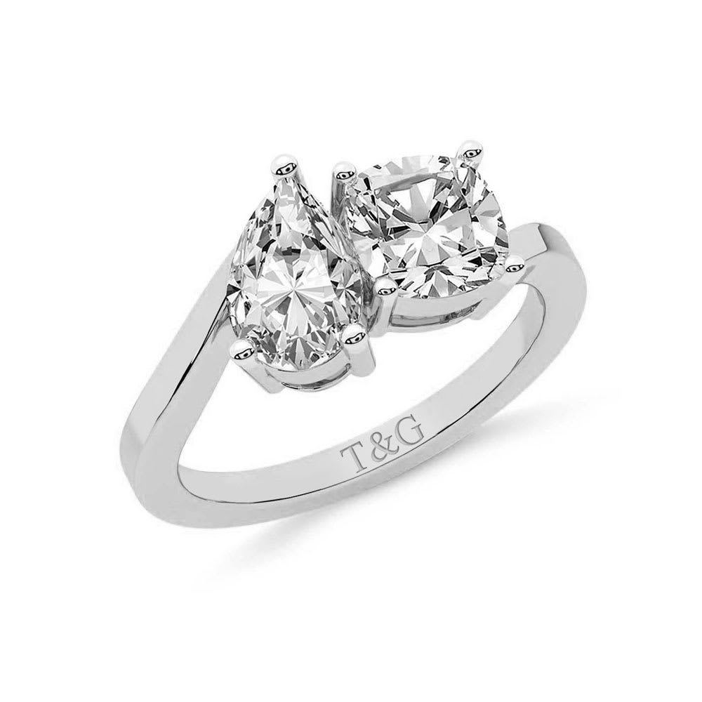 This elegant toi et moi ring showcases a pear-cut and cushion-cut diamond, beautifully set to represent two unique yet connected souls. The contemporary open design blends sophistication with romance, making it a perfect statement of love and commitment. All Temple and Grace jewellery is beautifully crafted to the highest standards and is made at our jewellery workshop directly by us (jewellery craftsmen). This is why you can save over 40% when compared to high-street retail prices. We also offer a lifetime warranty and unmatched 100 day returns. You can shop online or visit our jewellery stores in Sydney, Melbourne, Brisbane, Perth and Adelaide or book an appointment to visit our jewellery boutiques.